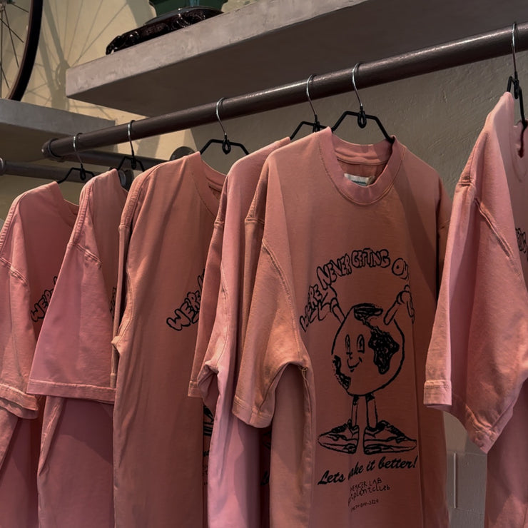 Constructed from a 180GSM reject cotton roll that would not have been used otherwise, we have made use of Tumeric and Beetroot as a natural dye to create a spectrum of colourful tees - from cream to bright yellow and light pink, and Eco Ink to screenprint the artwork.