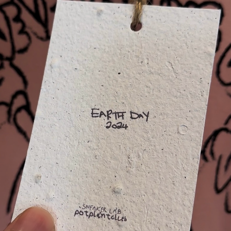 In addition to the sustainable and eco-friendly approach to the production of these Tees, we've added an extra element. The swing tag that comes with each tee, displaying our messaging is made out of seeded paper that can be planted and will grow into tomatoes.