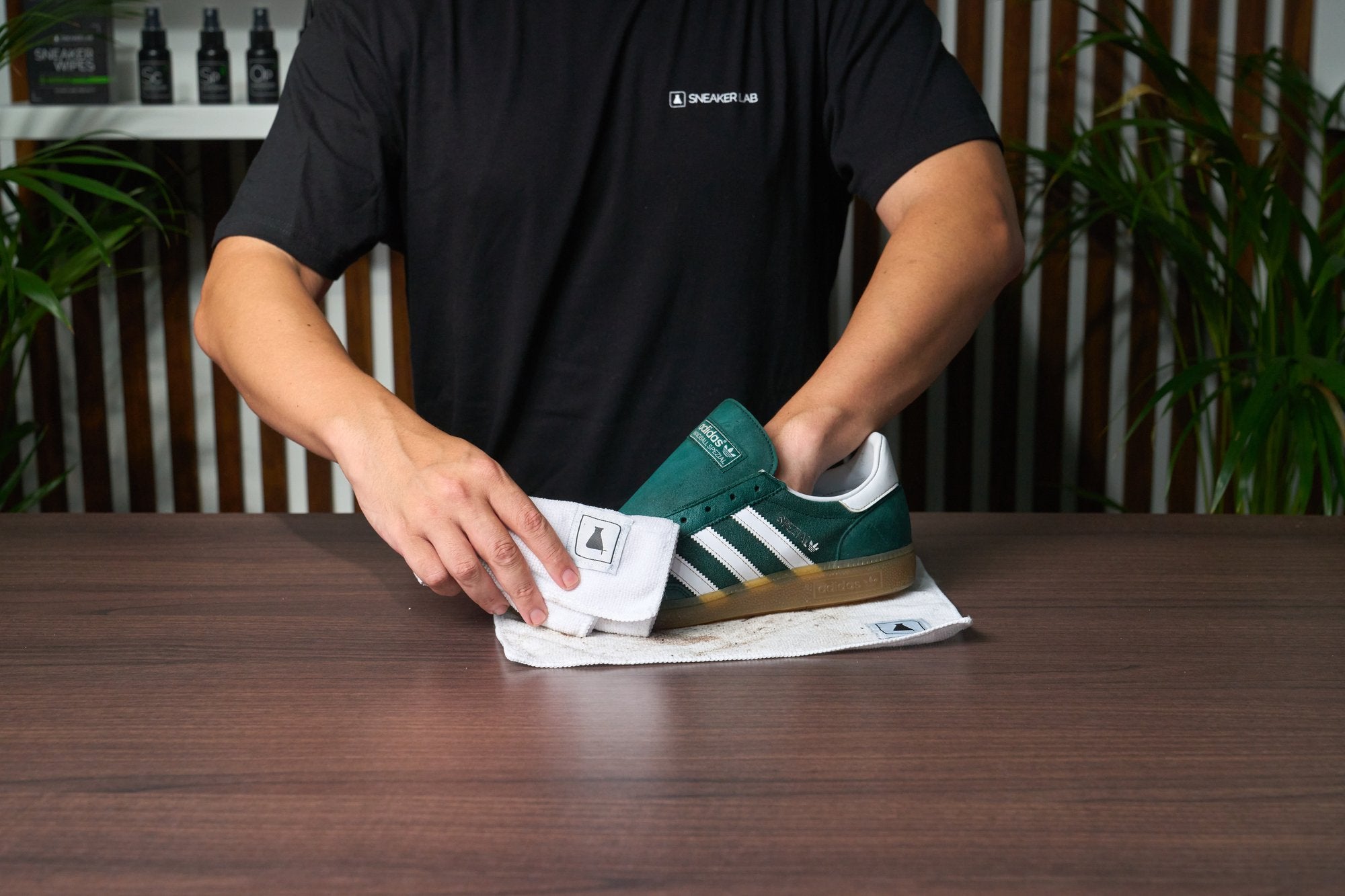 Step 3: Use our Microfiber Towel to pat away any lingering moisture and residual dirt from your Spezials. Allow your Spezial sneakers time to air dry.