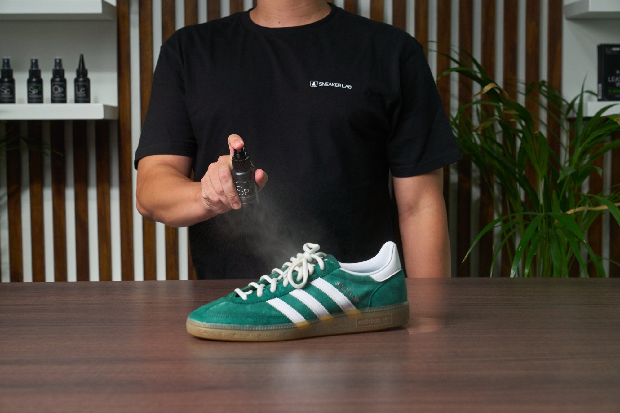 Step 5: Once both your sneakers and laces have dried completely, proceed to lace up your Adidas Handball Spezials and get ready to apply our protective sprays.