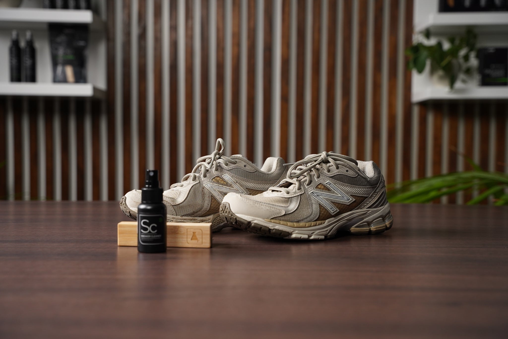 How To Clean the New Balance 860V2 in "Timberwolf" and "Moonbeam" using products from our Sneaker Care range.