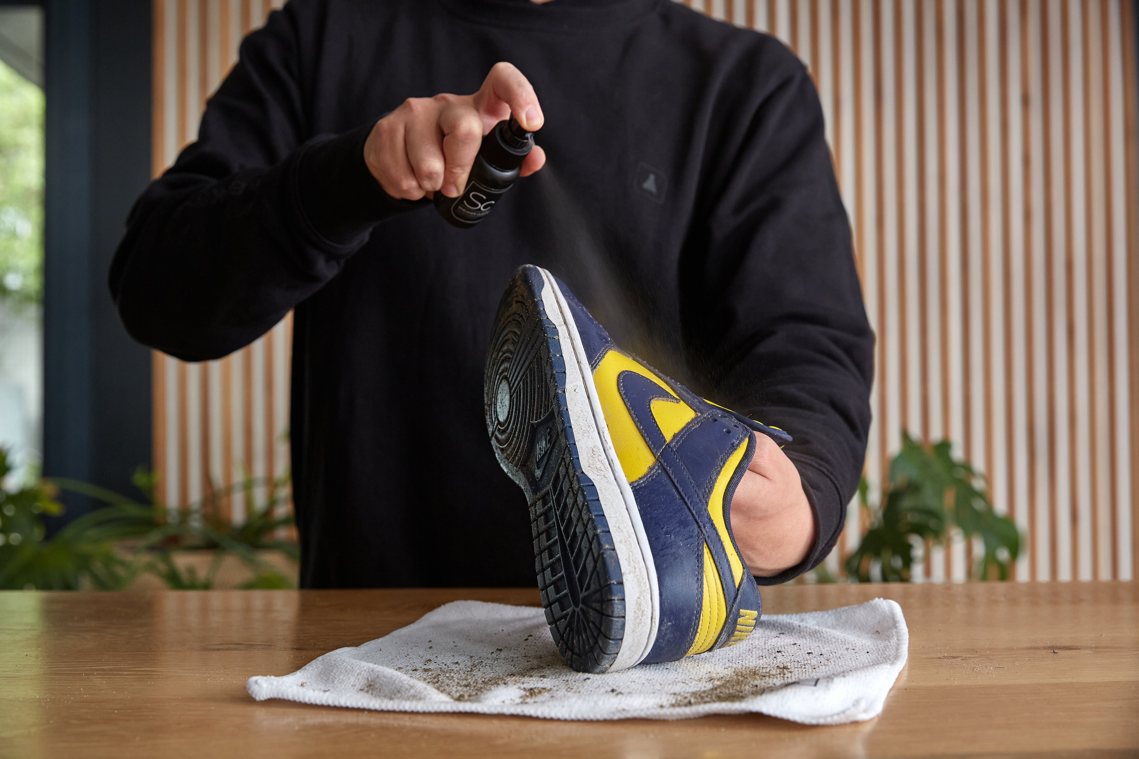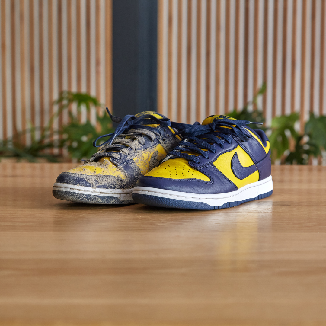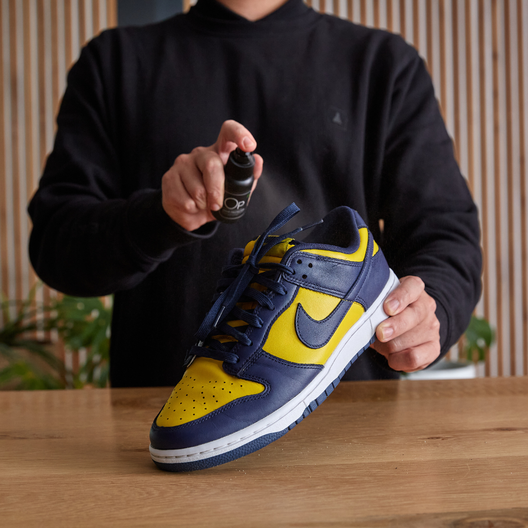 Today we will be cleaning the Nike Dunk Michigan and the products used can be found in our Premium Kit along with our Leather Care. The Premium Kit consists of our Sneaker Cleaner, Sneaker Protector, Odor Protector and Premium Brush.