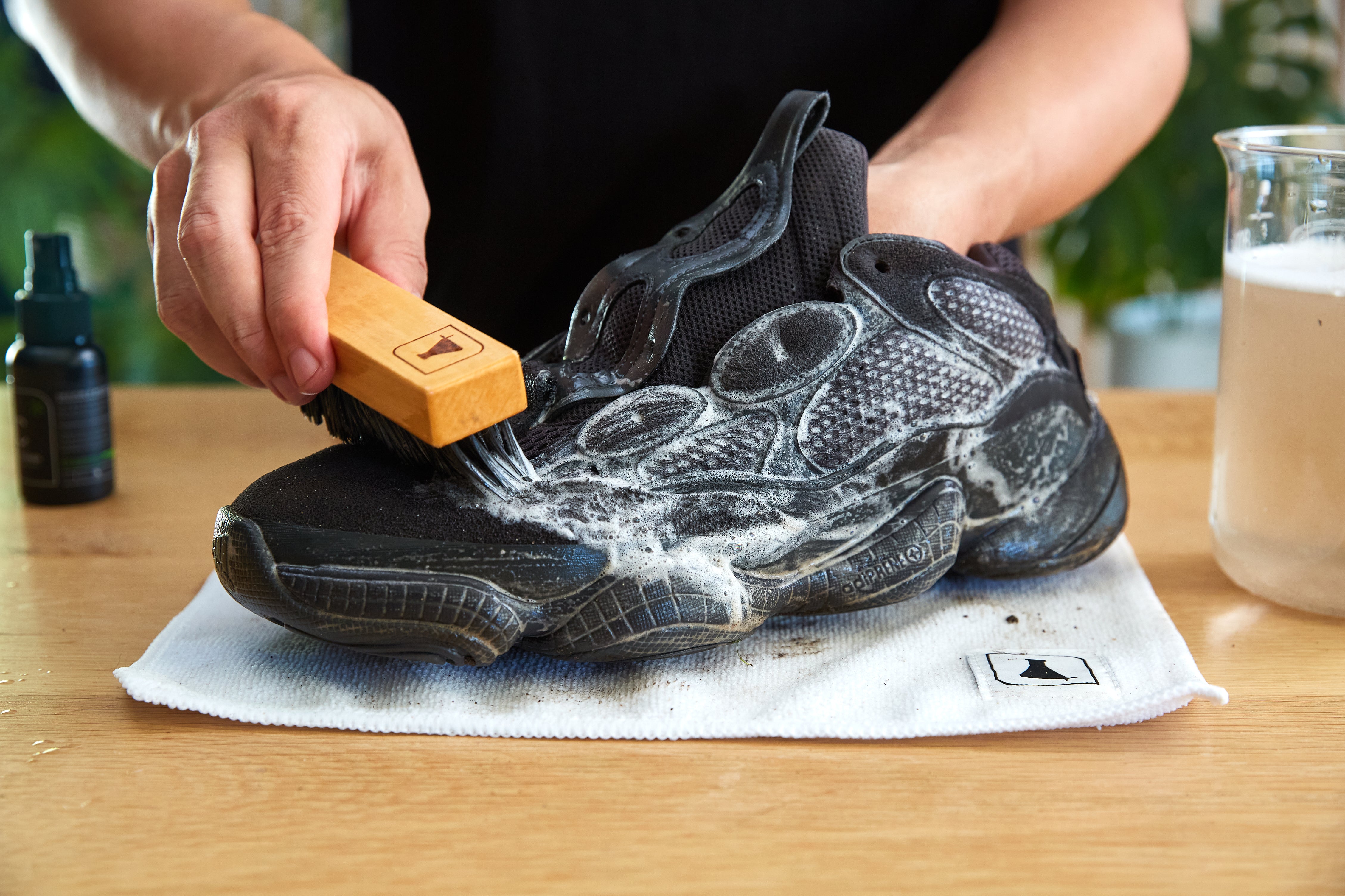 We used products found in our Premium Kit to get these Yeezy's looking fresh again. The Premium Kit contains our Sneaker Cleaner, Sneaker Protector, Odor Protector, and our Premium Brush.