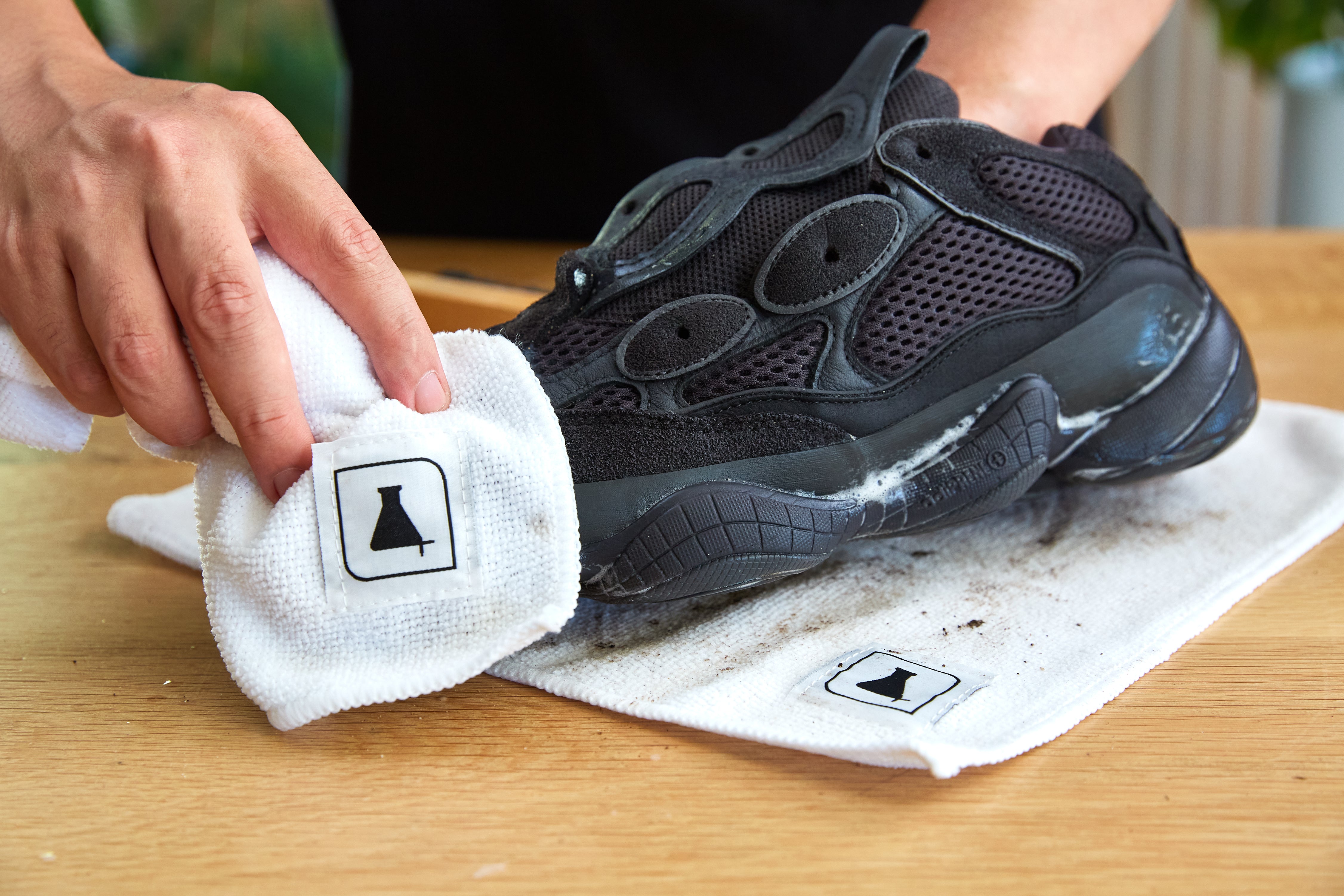 Wipe down the sneakers with a Microfiber Towel and set aside to dry.