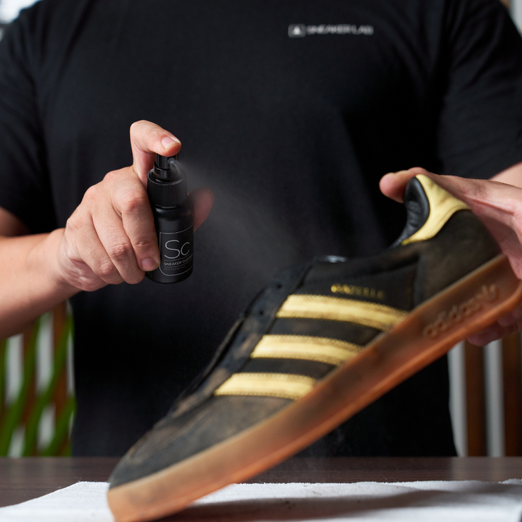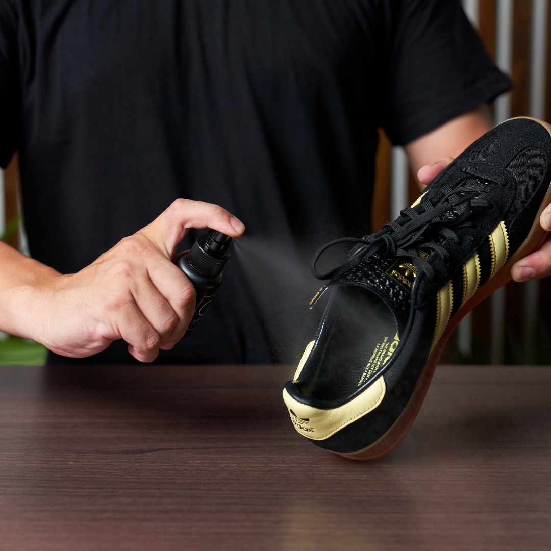 Lastly, spray our Sneaker Protector all around the exterior of the sneaker to prevent dirt and bacteria from setting in and in turn making your next clean easier. You are now ready to hit the streets in your clean Adidas Gazelles!