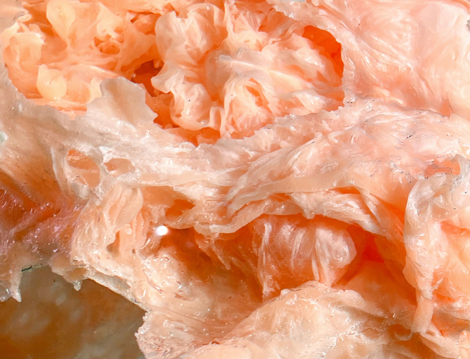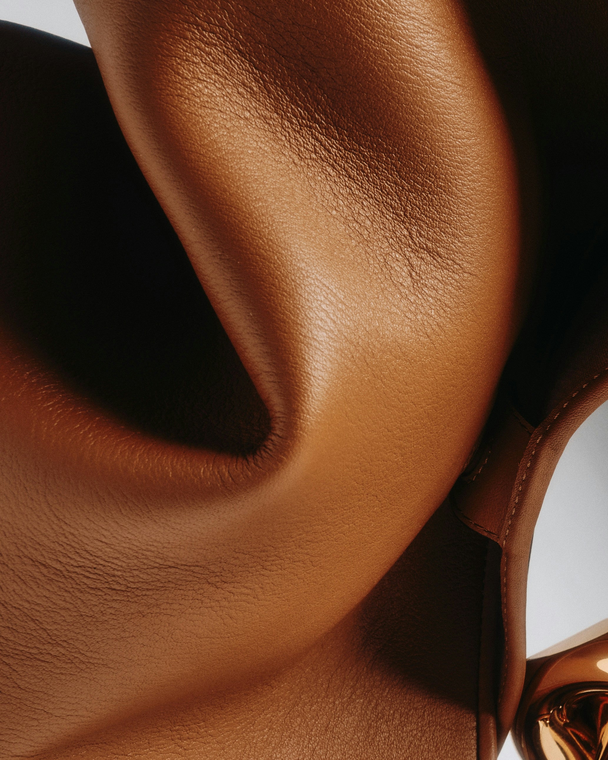 Fashion is also returning to the wisdom of fungi – with mycelium fabric, often referred to as mushroom leather, as another innovative next-gen fabric. Made from the intricate root and informational system of fungi, it offers a sustainable alternative to traditional leather, as it’s biodegradable and can be produced with minimal environmental impact. Mycelium fabric boasts qualities such as flexibility, strength, and a unique texture that mimics traditional leather. Mylium is a leading force in this space, with their transparency of process showcasing the deeply scientific (and almost alchemical) approach to creating fabrics. Their process of creating mycelium fabric begins with a pure culture of mycelium, which is introduced into a bioreactor, where it grows and multiplies in a nutrient-rich liquid medium. Natural binding agents are then added to the growing mycelium to strengthen its structure. The resulting mixture is mechanically shaped into sheets and dried to form a flexible textile. To refine its properties, the finished fabric is then treated with a specialised coating, enhancing qualities such as durability, water resistance, or texture, making it a versatile and regenerative alternative to traditional leather.