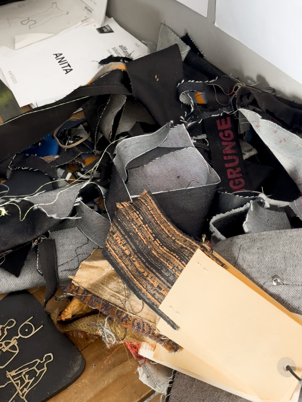 AFROGRUNGE was born from Anita’s desire to merge the unapologetic energy of grunge with the vibrance and pride of African identity. But at its heart, her brand is also a rebellion against fashion’s wasteful norms. Rather than only creating from virgin fabrics, Anita collects discarded denim offcuts from her own work, forgotten jeans from closets, and scraps destined for landfill; and gives them new life.
